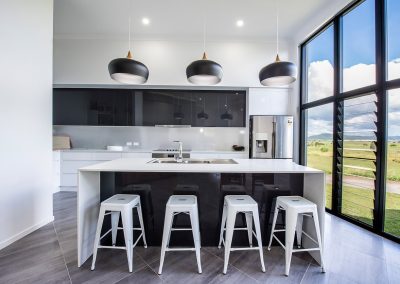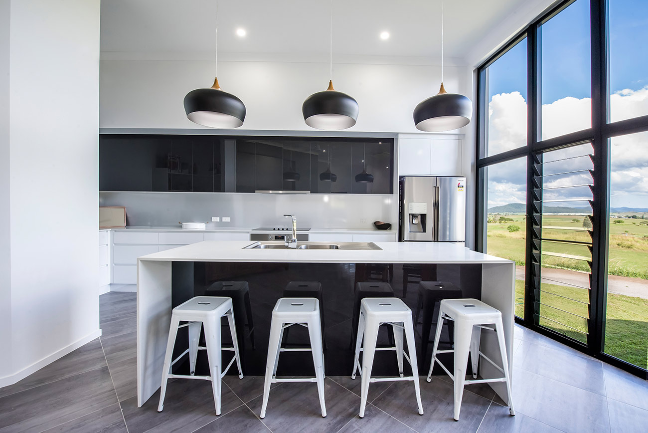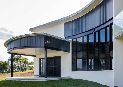 The clients were looking for an industrial, modern home in Mackay that incorporated soft, sweeping curved edges with multi-stepped levels to take advantage of the gentle slope of the land and the southern views.